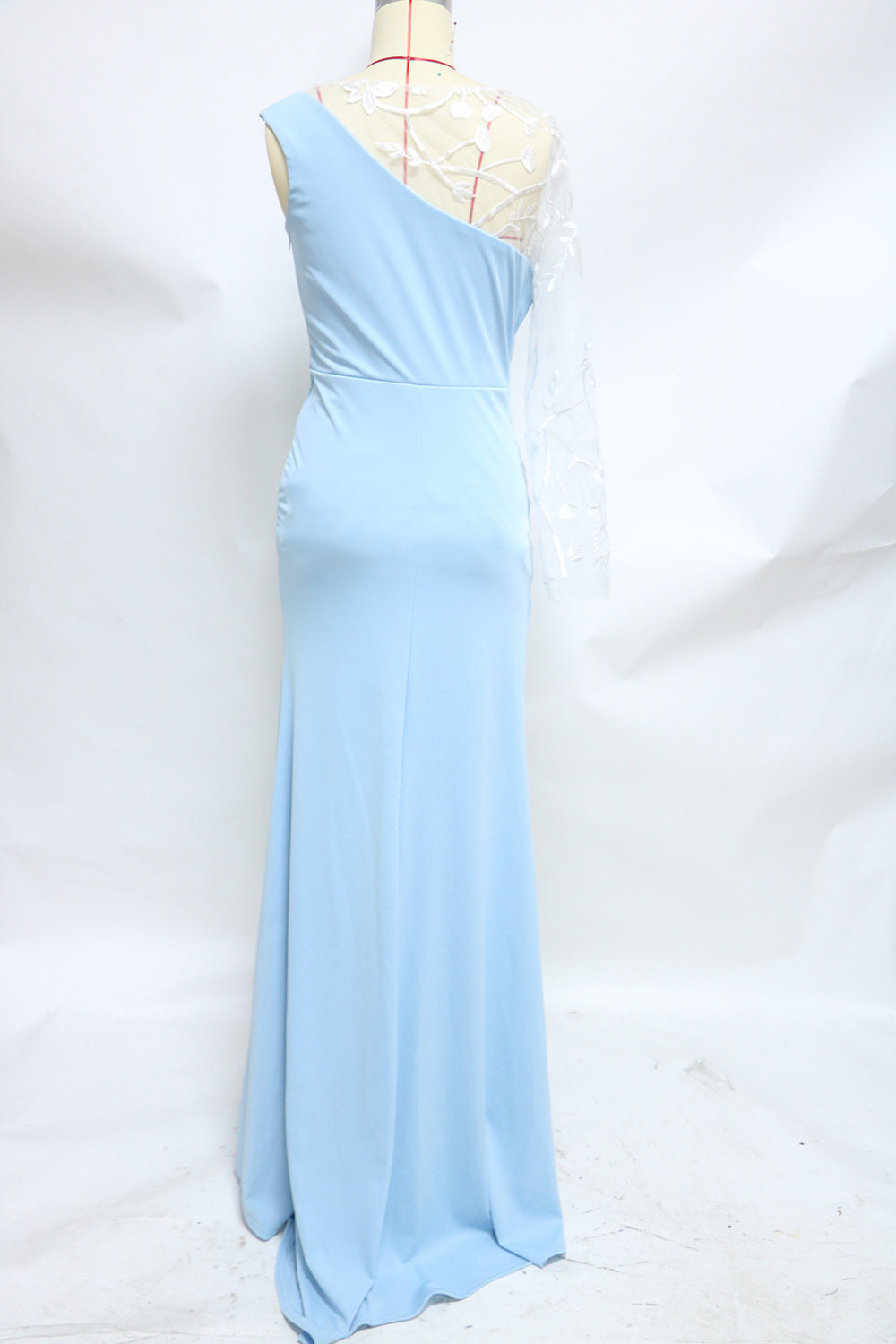 Single Sleeve Lace Slim Evening Dress Split Sexy Female Charm Slim Long Sleeve Banquet Dress