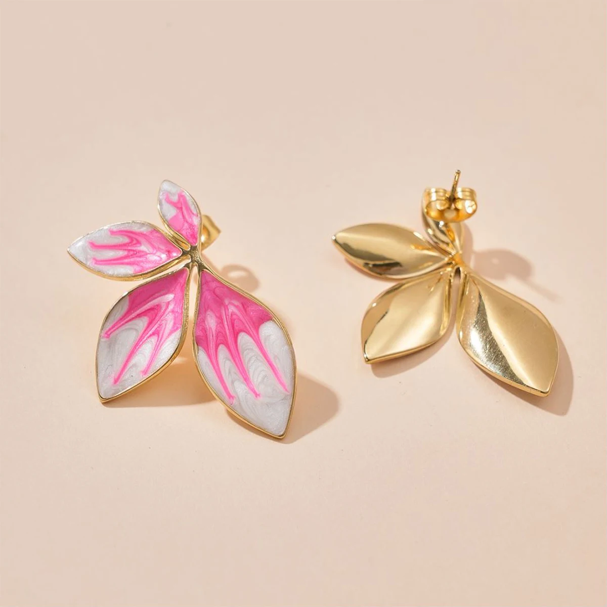 Stainless Steel Stud for Women Girl Pink Purple Leaf Trendy Unique New Arrival Earrings Party Gift