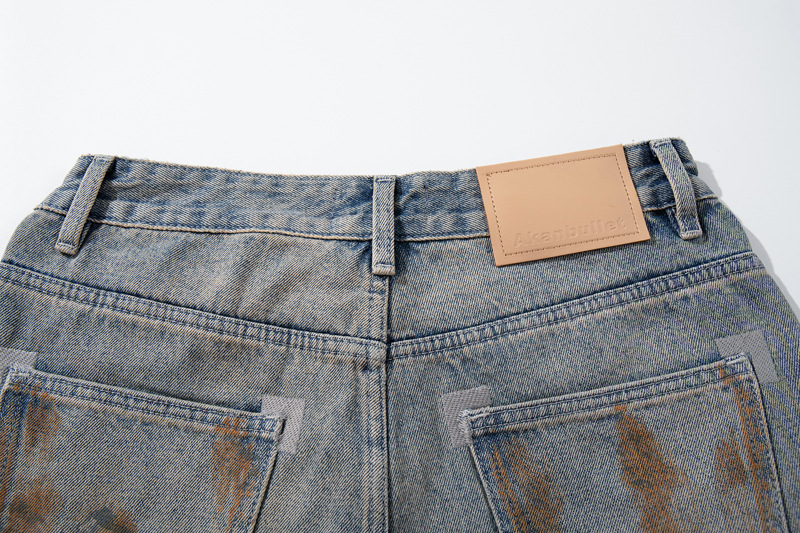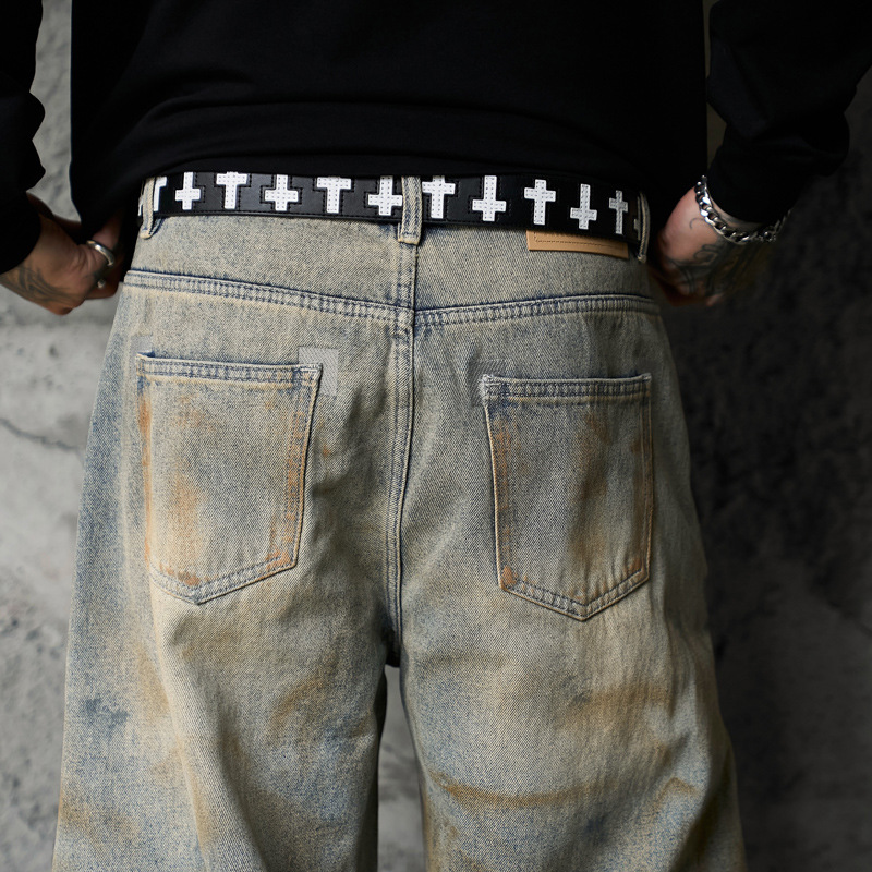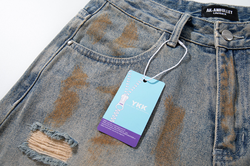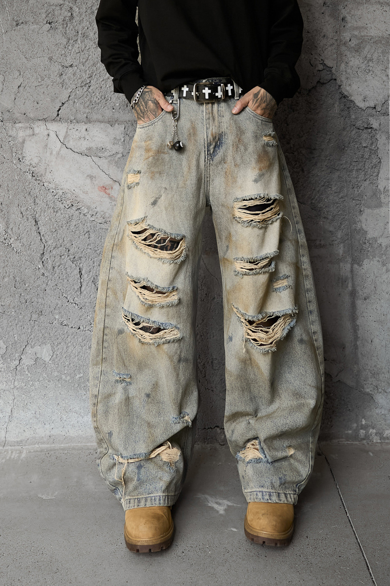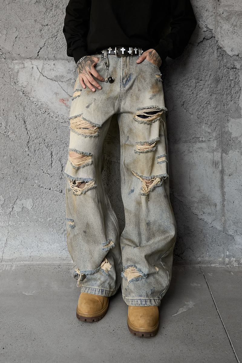 Style Casual Knife-Shape Pants Men Loose Straight Leg Distressed Autumn Fashion Vintage Ripped Jeans