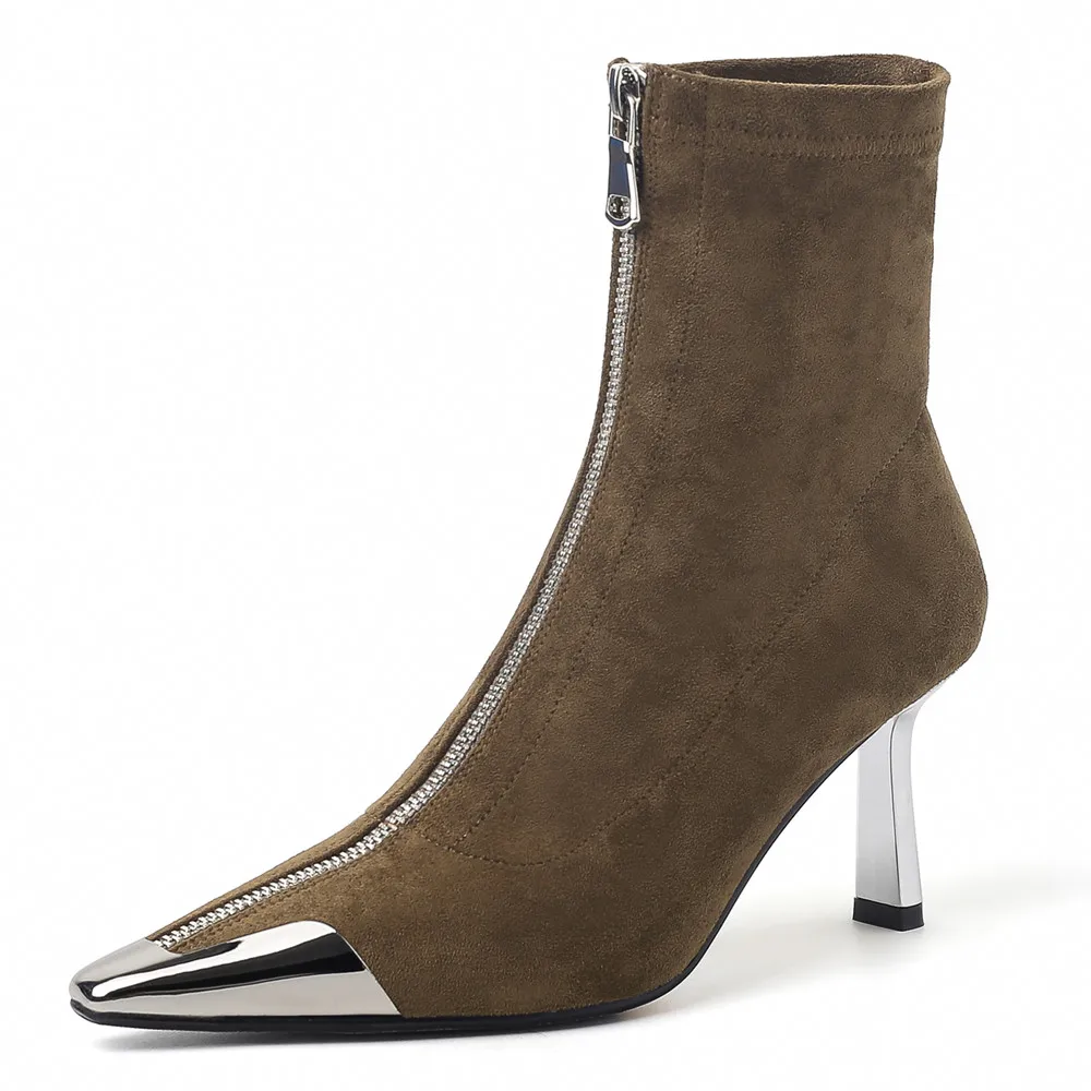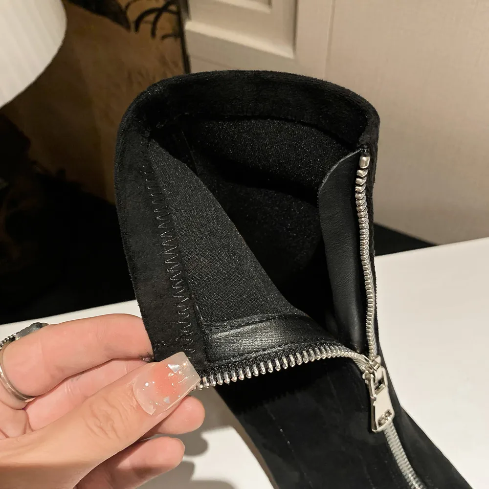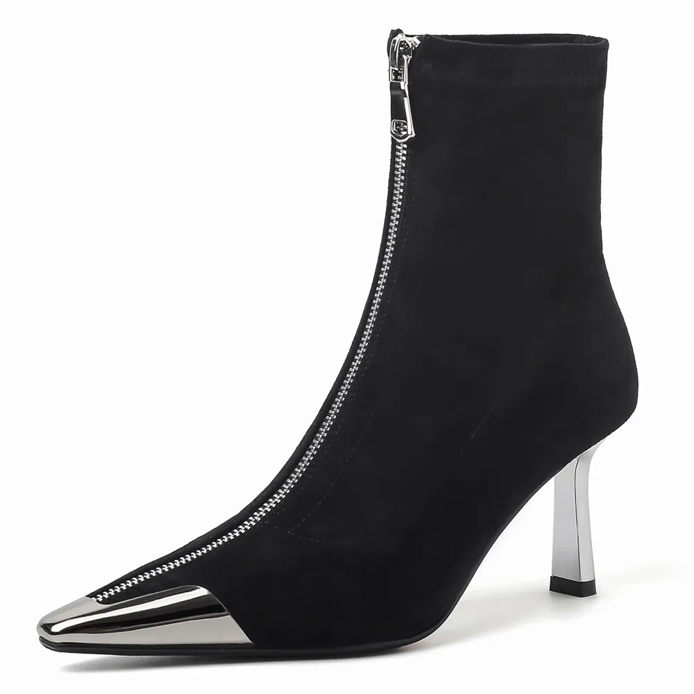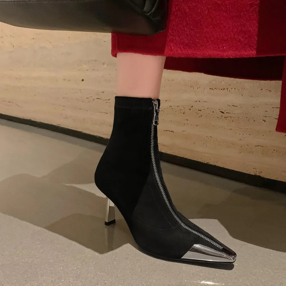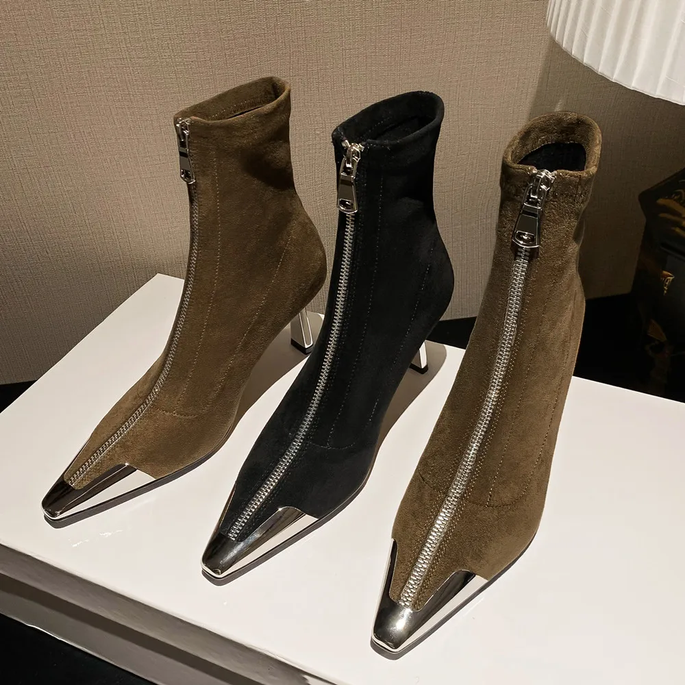 Thin High Heels Elegant Women Ankle Boots Fashion Metal Decoration Zipper Office Lady Party Shoes Woman Autumn Winter