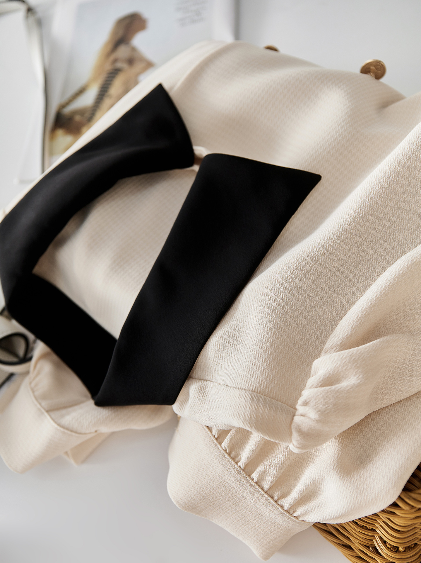 简漫 一衣两穿 斜纹肌理撞色小香风衬衫外套 杏色小个子长袖上衣