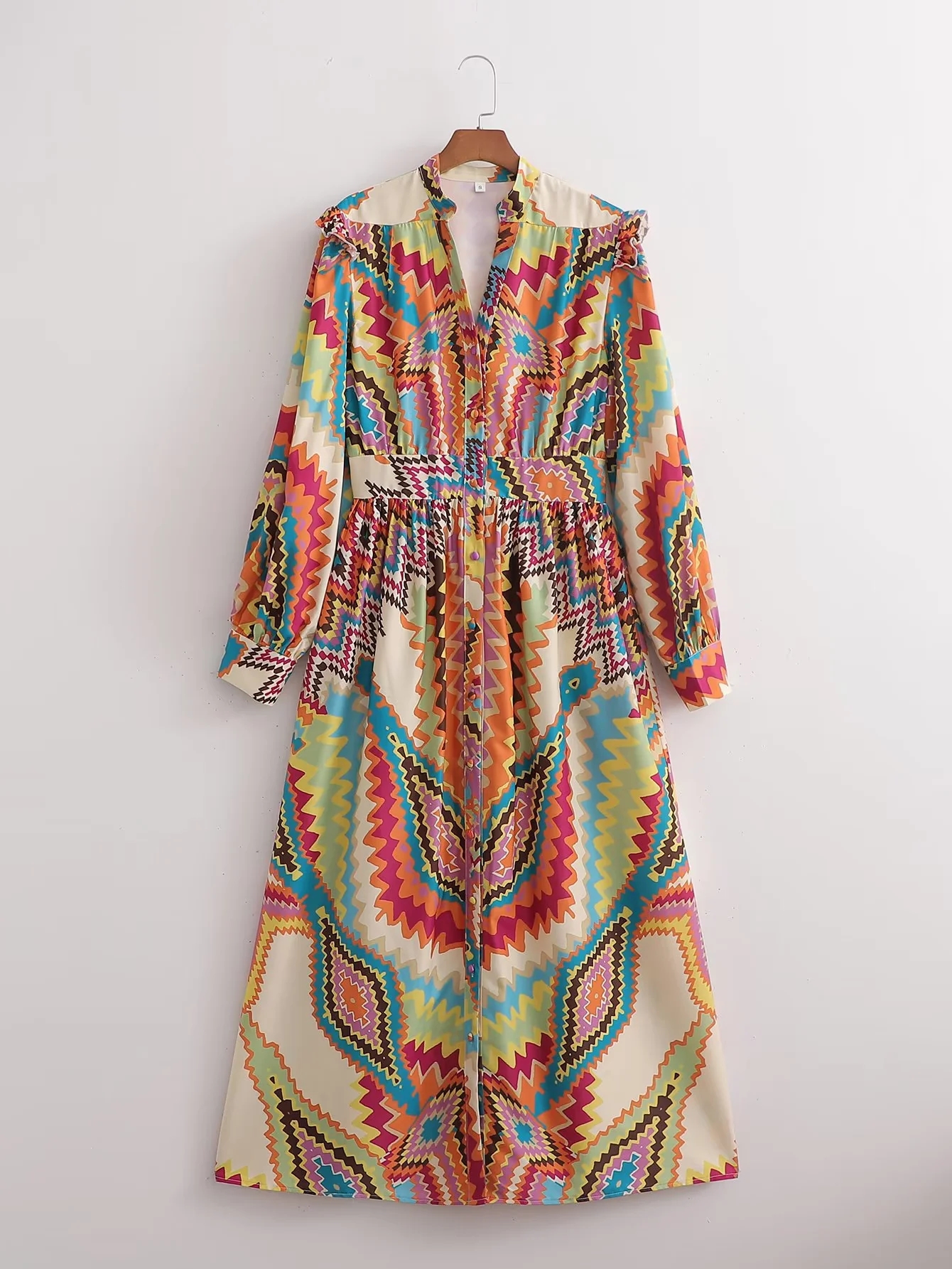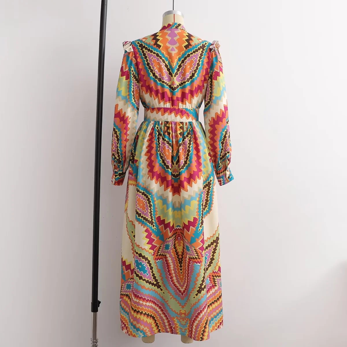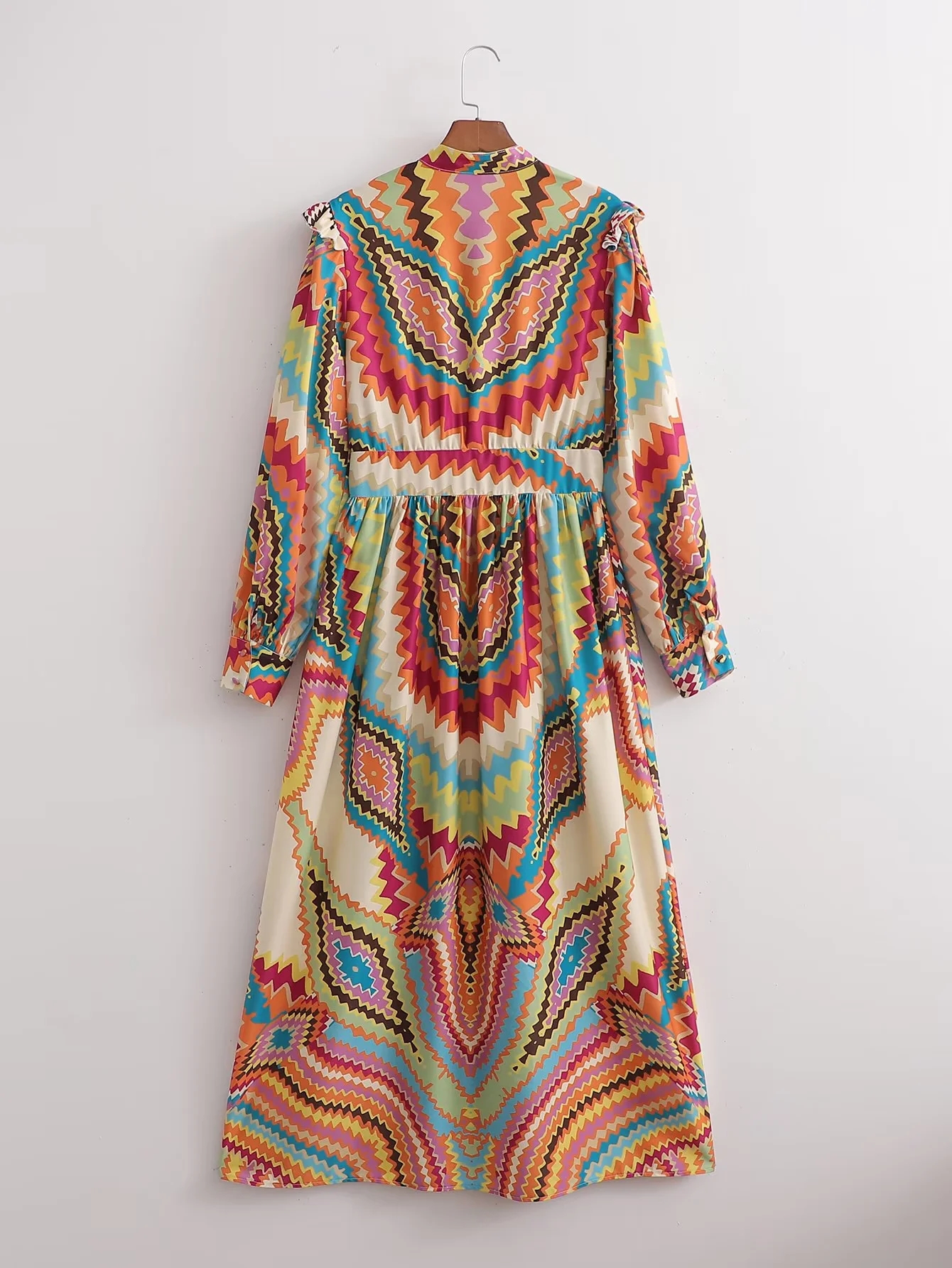 Women Dress Fashion Printed Midi Dress Woman Vintage Long Sleeve Female Party Dresses