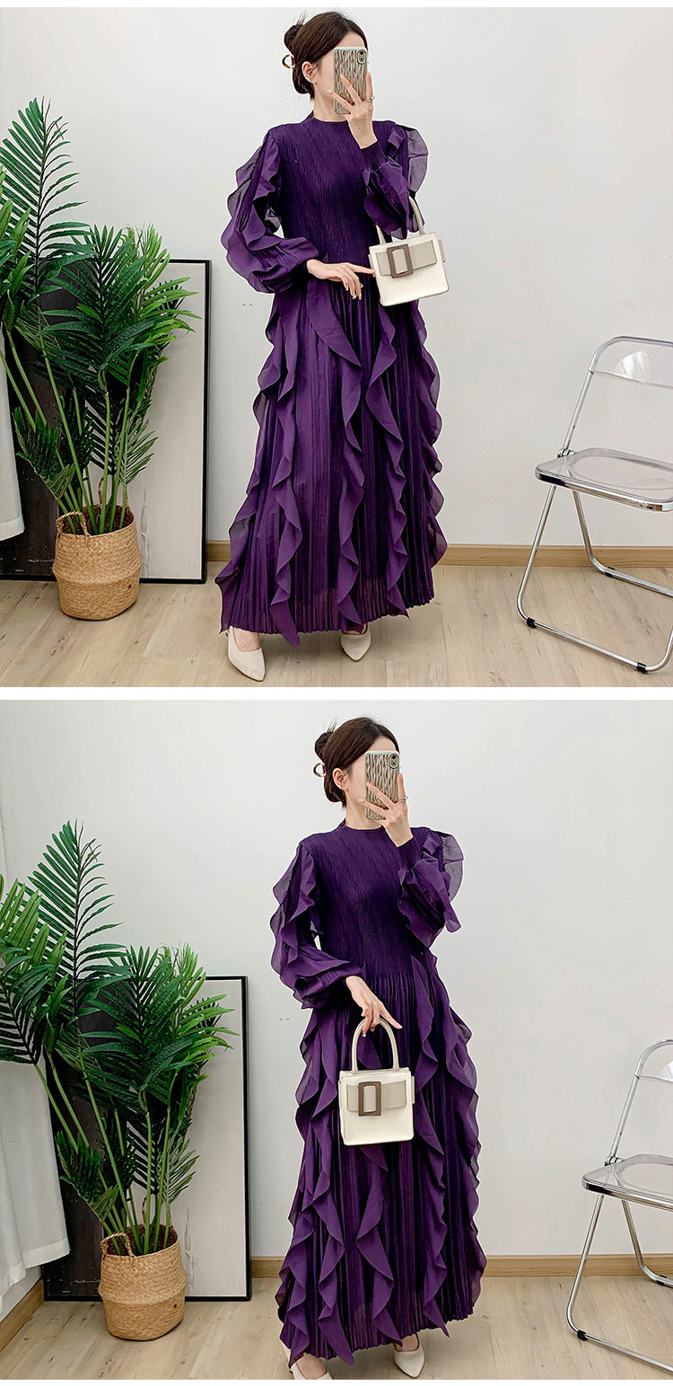 Wrinkled Heavy Industry Piece Dress Middle East Long Outer Single Long Skirt Western Style Female Wide Pine Female